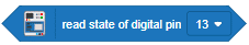 The block reads the state of the digital pin on evive (“High” or “Low”). If the state of the pin is “High”, it returns True, else False.