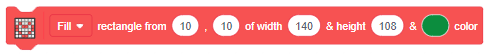 The block is used to draw or fill a rectangle on the evive TFT display. It takes the coordinates of a point as input alongside the required width, height, and color and draws/fill the rectangle.