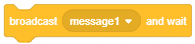 The block sends a broadcast throughout the whole Scratch project — any scripts that are halted with the When I Receive () block and are set to the broadcast will activate. This broadcast block lets scripts send broadcasts, and have them wait until all scripts are activated by the broadcast ends.