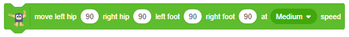 The block sets the servo motors of humanoid legs & hips to the specified angles at the speed.