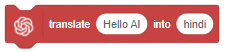 The block makes a request to ChatGPT to translate the text specified in the first input field into the language specified in the second input field. The response of ChatGPT is then stored in PictoBlox and can be accessed using the get AI response block.
