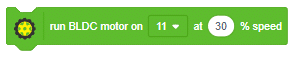 This block allows the user to control a Brushless DC (BLDC) motor via Pulse Width Modulation (PWM) on a selected pin. The speed of the motor is adjustable, allowing the user to create the desired speed profile.