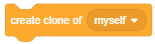 It creates a clone of the sprite in the argument. It can also clone the sprite it is running in, creating clones of clones, recursively.
