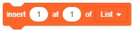 The block inserts an item containing the given text into the list, at the given position. All values below the inserted item are passed onto the item beneath them; the last item’s value is placed in a new item at the end of the list.