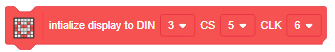 The block sets up an 8×8 Dot Matrix display and assigns the pins of the display (DIN, CS, CLK) to be connected to the Arduino board. The code assigns the name of the display to the pins for easy referencing and establishes communication between the Arduino board and the display.