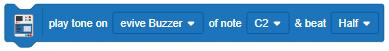 When the block is executed it plays the tone of specified frequency/note for a specific duration/beat. The note and the beat can be selected from the drop-down menu. Also, the user can input the specific frequency and duration (in milliseconds).