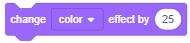 The block changes the specified effect on its sprite by the specified amount. There are seven different effects to choose from: colour, fisheye, whirl, pixelate, mosaic, brightness and ghost.