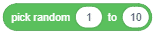 The block picks a pseudorandom number ranging from the first given number to the second, including both endpoints. If both numbers have no decimals, it will report a whole number. For example, if a 1 and a 3 were inputted, the block could return a 1, 2 or 3. If one of the numbers has a decimal point, even .0, it reports a number with a decimal. For example, if 0.1 and 0.14 were given, the output will be 0.1, 0.11, 0.12, 0.13, or 0.14.