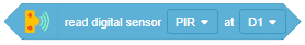 The block returns the state of the digital sensor connected to the specified pin of the Quarky.