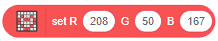 The block returns the hex code of the Red, Green, and Blue values specified.