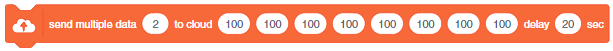 The block sends multiple data to the ThingSpeak channel with a delay of the specified time seconds. The data is mapped to the 8 fields of the ThingSpeak channel.