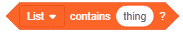The block checks if any items in the specified list are equal to the given text—if at least one of them is, the block returns true; if none of them are, it returns false. The item must contain the exact text; for example, “abc” would not work if the item contained “abcde”. This block is case-sensitive.