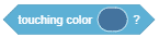 The block checks whether its sprite is touching a specified color. If it is, the block returns “true”.