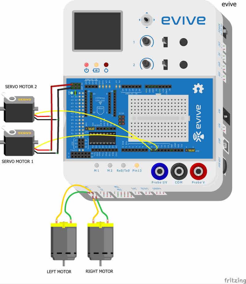 The following code should be uploaded to evive.Final ScriptArcheryControlGoStraight GoBackward TurnLeft TurnRight Brake